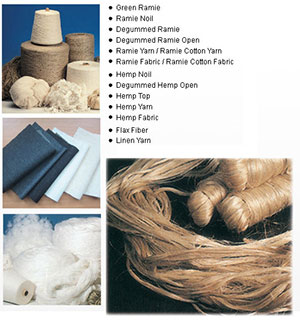 Textile raw material such as ramie, hemp and linen are traditional goods which we have dealt with for decades and exported to Japan, Thailand, Korea, Germany etc. All of them are natural fibers, and are widely used in spinning, knitting, weaving for garment and other textile industry. Products list: degummed ramie opened, ramie top degummed flax fiber (natural or bleached) degummed hemp opened (natural or bleached) linen yarn (15NM/1,24NM/1,36NM/1,48NM/1 or Organic if need) hemp yarn (15NM/1,24NM/1,36NM/1,48NM/1 or Organic if need)